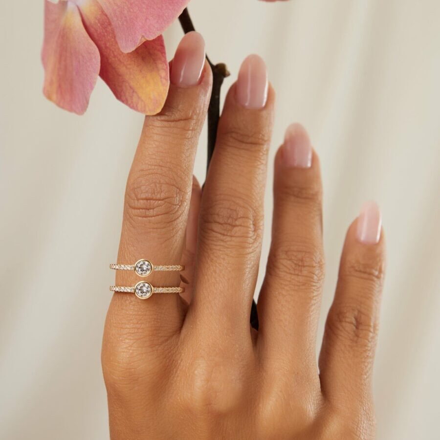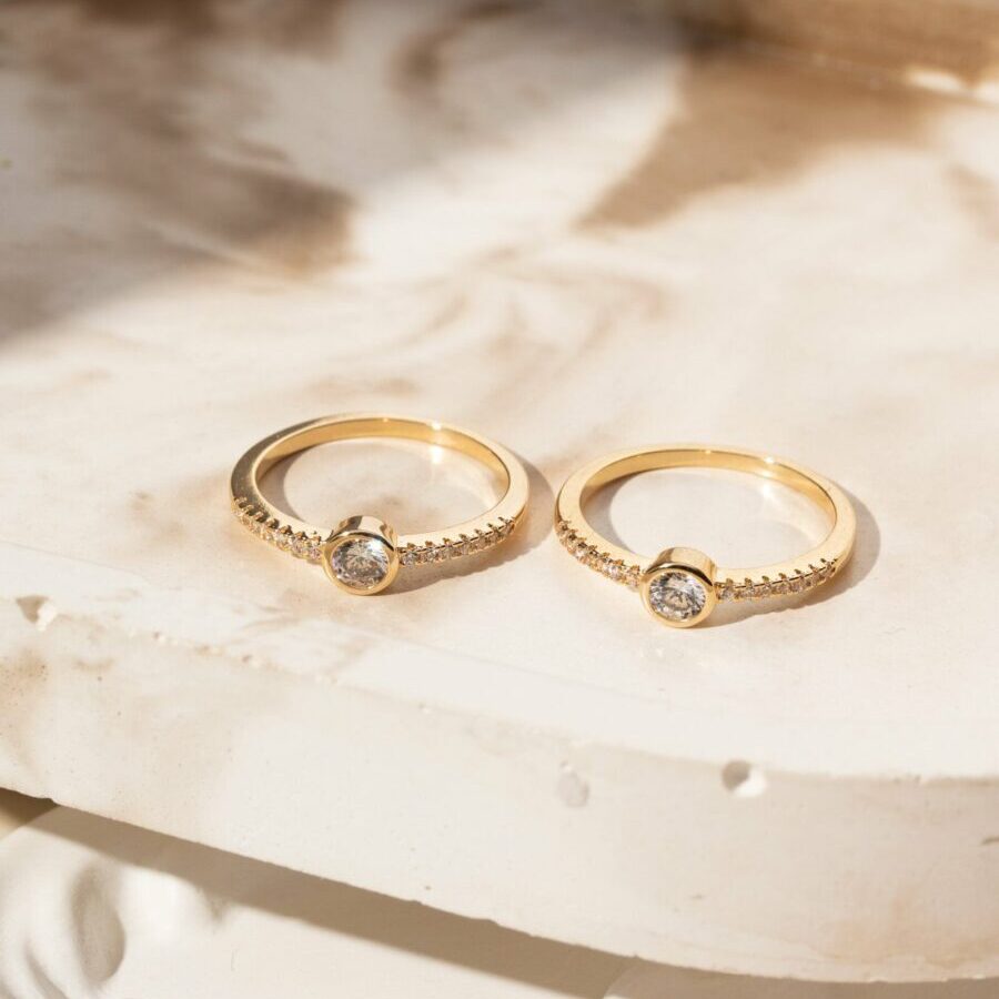 Anel solitário com zircônia redonda branca em banho ouro 18k.
